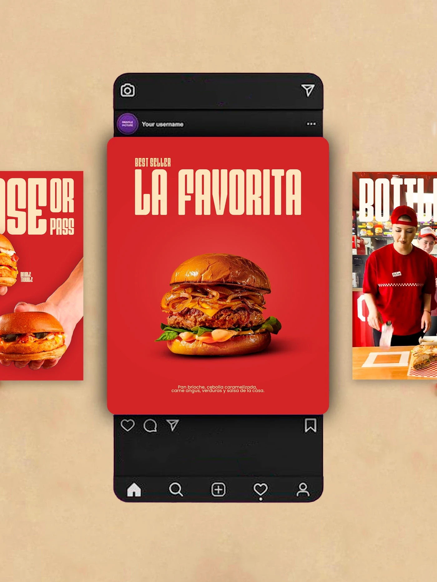This project was developed as a creative exercise for a fictional burger brand a self-initiated exploration aimed at improving my branding and content design skills while experimenting with strategies that connect design with business growth.